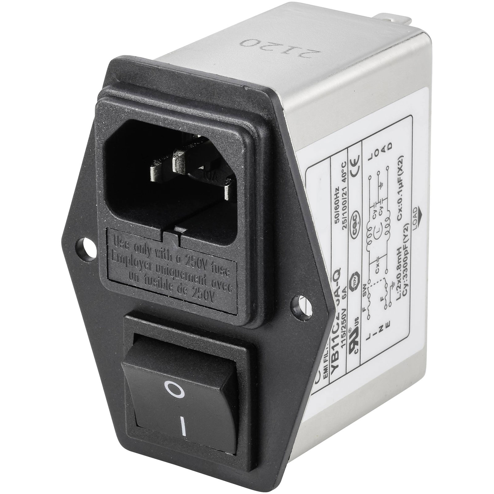 16. TRU COMPONENTS TC-10101460 Line filter IEC socket switch 2 fuses 250V 6A 0.8mH 93.61