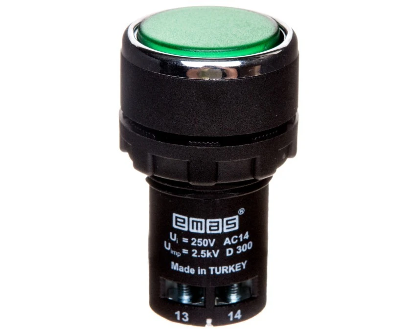 15. Przycisk sterowniczy monoblok, kryty, niestabilny, 1NO, zielony T0-MB100DY 19.22