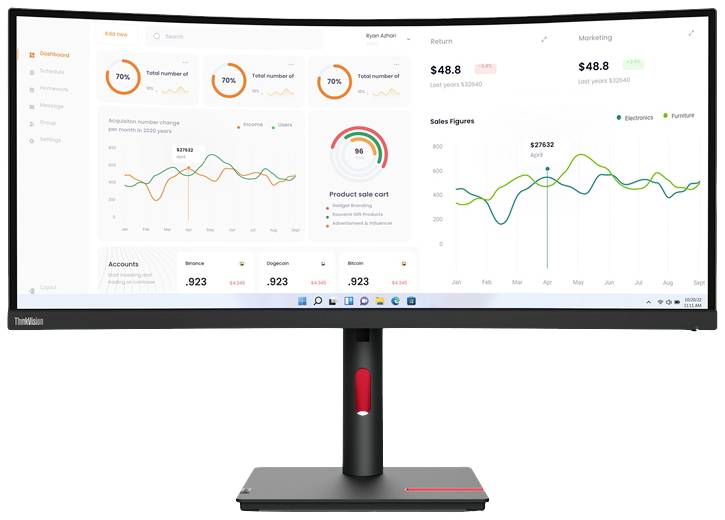 6. Lenovo ThinkVision T34w-30 Monitor EEK F (A - G) 86.4 cm (34 cal) 3440 x 1440 px 21:9 6 ms DisplayPort, HDMI, USB-C®, US 5759.00