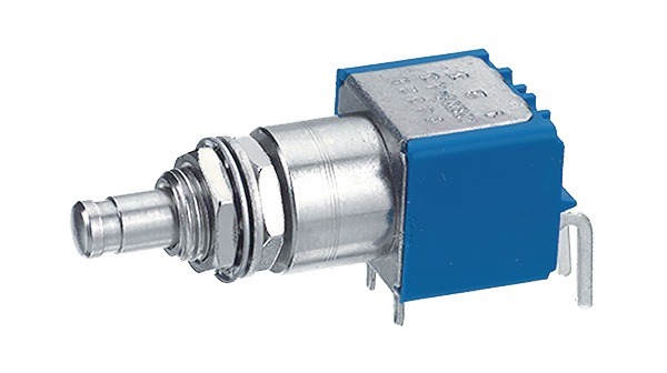 Przycisk miniaturowy Chwilowy DPDT średnica wycięcia 5.6mm, montaż panelowy KNITTER-SWITCH