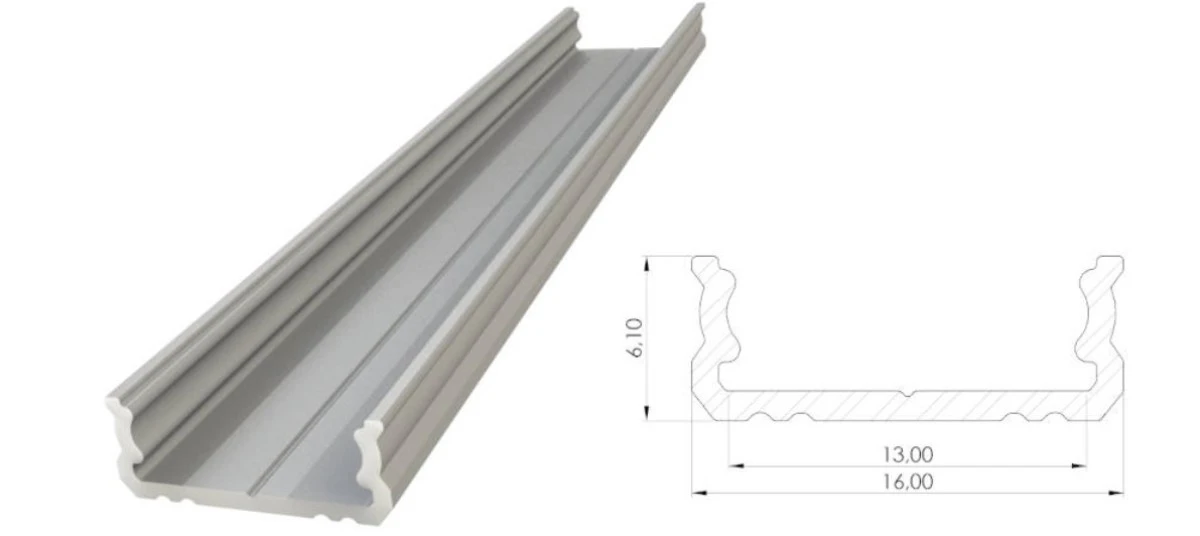 Profil ALU nawierzchniowy 6,1mm, anodowany srebrny, dł. 1000mm, max. szer. taśmy 12mm