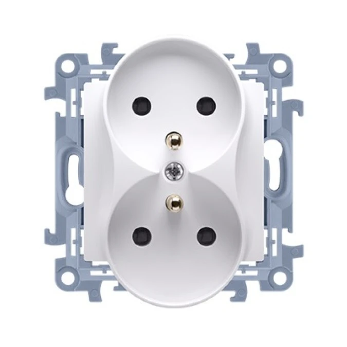 Simon 10 Gniazdo podwójne z/u białe 16A 250V IP20 CGZ2M.01/11
