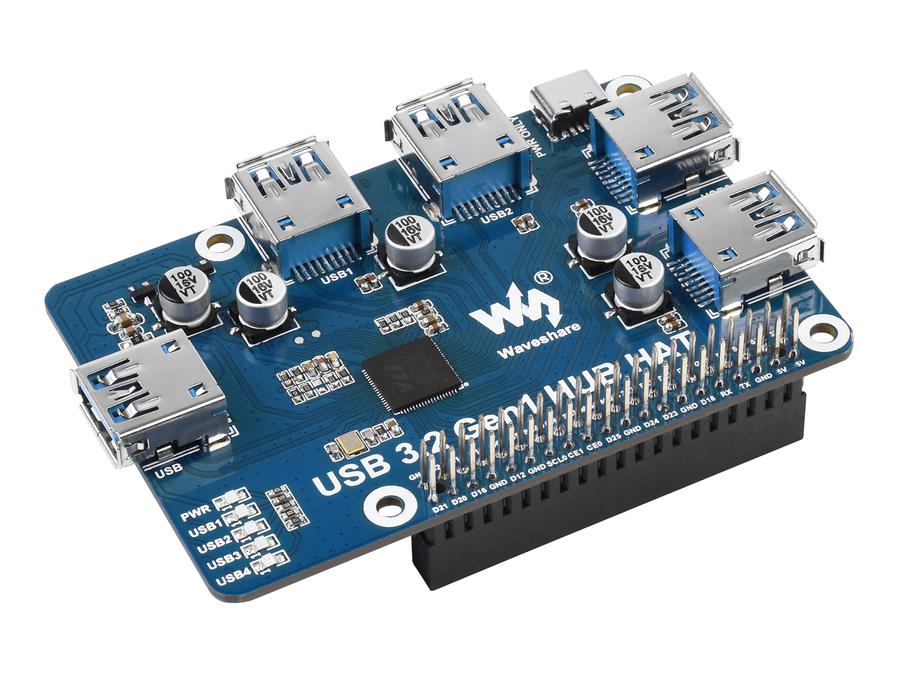5. Waveshare USB 3.2 Gen1 HUB HAT for Raspberry Pi, 4x USB 3.2 Gen1 Ports, Driver-Free 109.85
