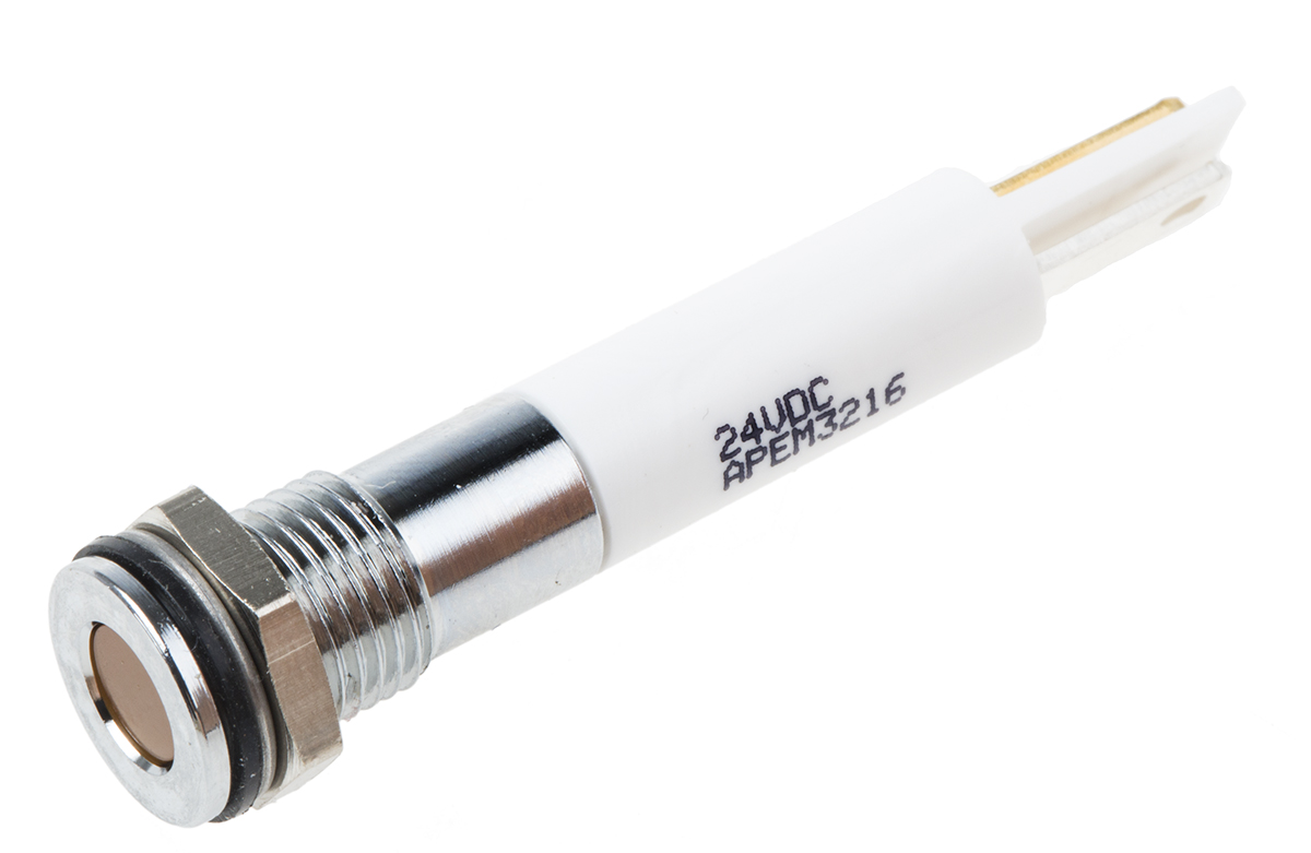 15. Lampka kontrolna do montażu panelowego 24V dc Pomarańczowy 8mm LED Chrom Faston, oczko lutownicze RS PRO 108.55