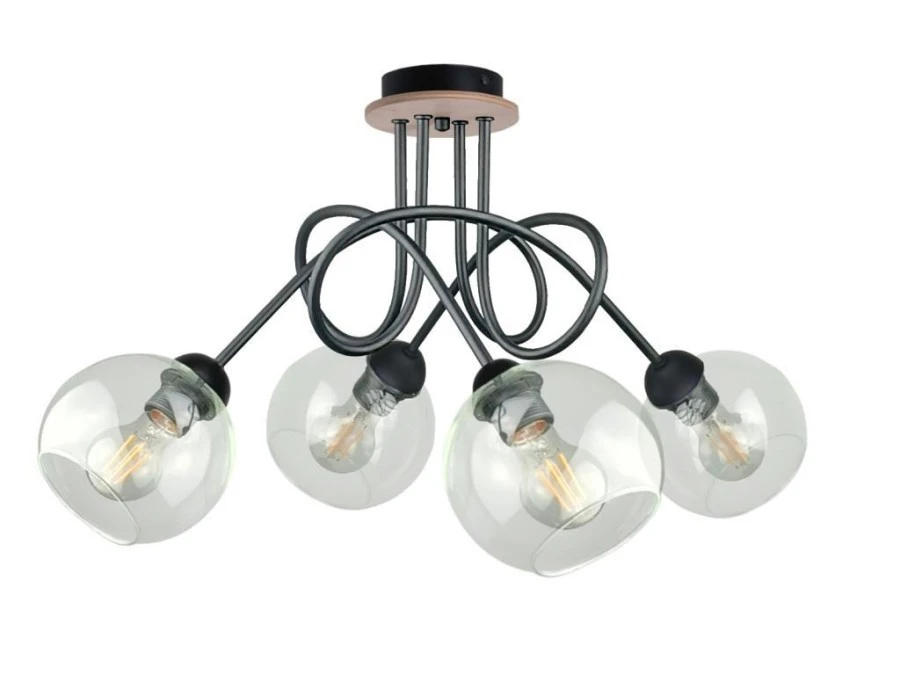 Lampa sufitowa nowoczesna 4xE27 EVIE BLACK/WOOD