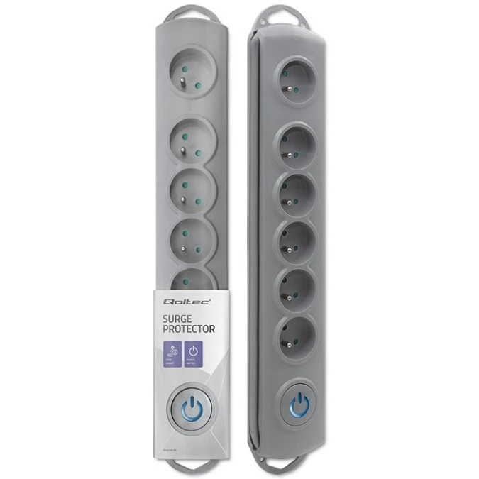 6. Qoltec Listwa zasilająca antyprzepięciowa 6 gniazd 3m Szara 46.94