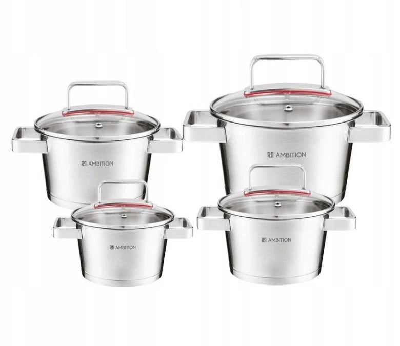 Zestaw garnków AMBITION Selection 8 + Komplet patelni z powłoką Qualum Basic Stone Edition Tres 3 68725 + 521941