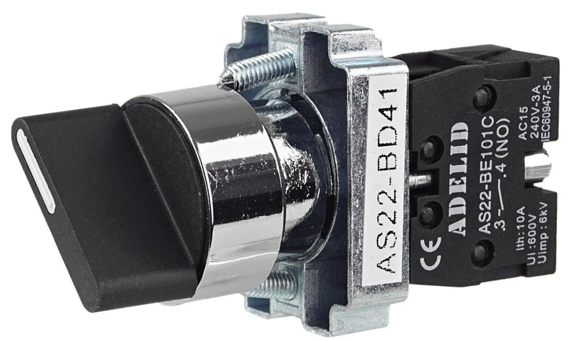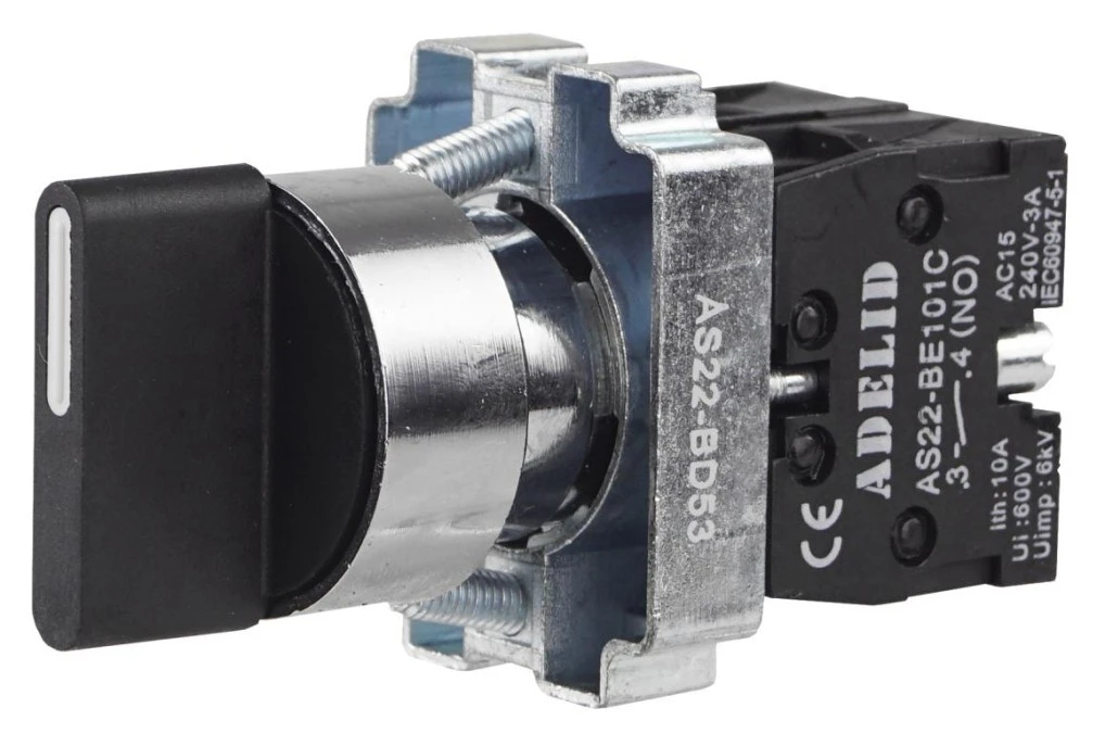 4. Przełącznik O-1 AS22-ED21 1NO piórkowy czarny fi=22mm 10A 600V, AC15 240V 3A ADELID 10.00