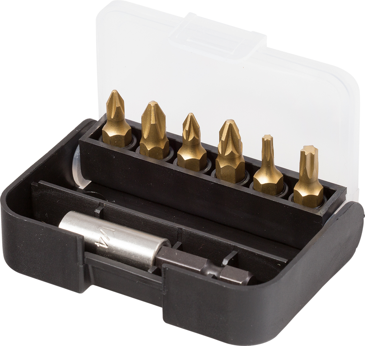 3. Zestaw końcówek do wkrętaka Phillips, Pozidriv, Star l. elementów: 7 rozmiar: PH2, PZ1, PZ2, T20, T25 Zestaw końcówek 108.15