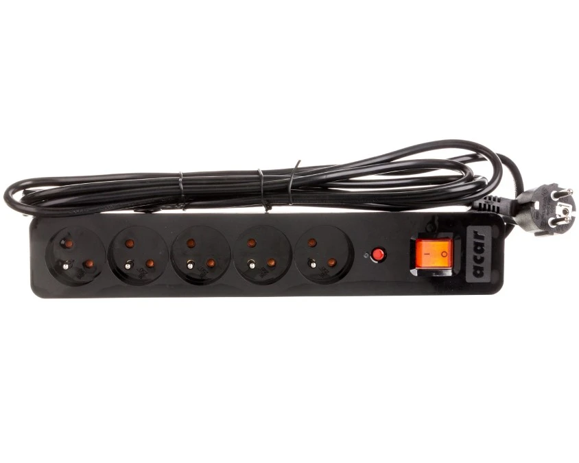 3. Przedłużacz przeciwprzepięciowy 5-gniazd ACAR X5 1,5m czarny 75.44