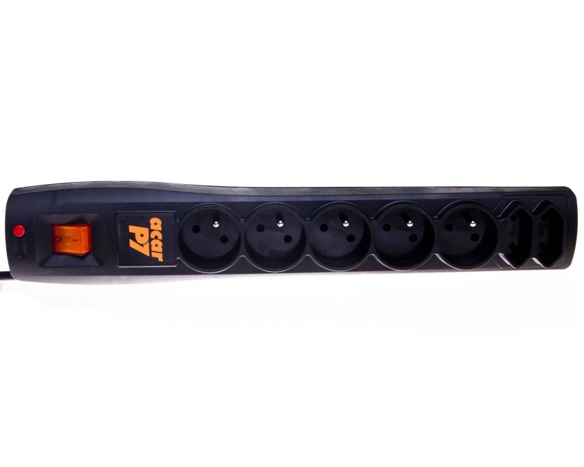 6. Przedłużacz przeciwprzepięciowy 5-gniazd z/u ACAR F5 3m czarny 76.28