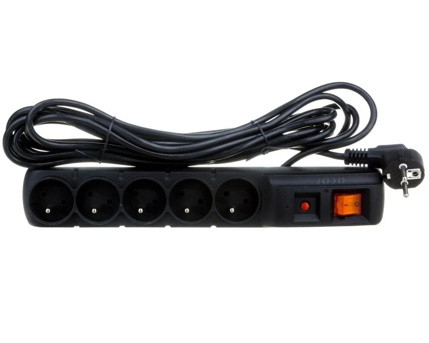 Przedłużacz przeciwprzepięciowy 5-gniazd z/u ACAR F5 5m czarny