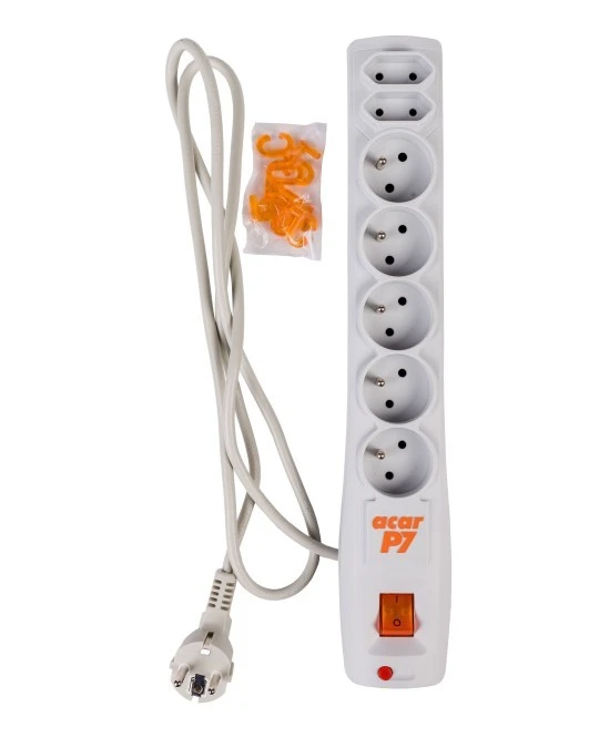 Przedłużacz przeciwprzepięciowy 7-gniazd ACAR P7 1,5m szary