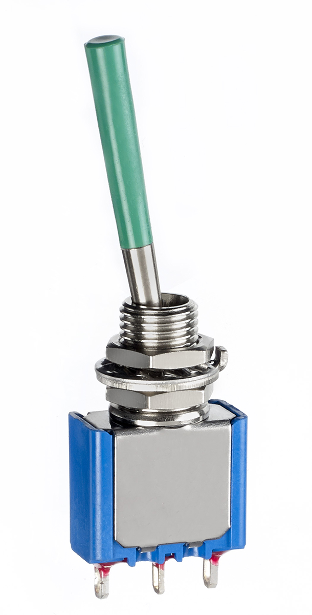 Przełącznik migowy przechylny Zatrzaskowy średnica wycięcia 6.5mm SPDT APEM Montaż panelowy długość przełącznika 6.3mm