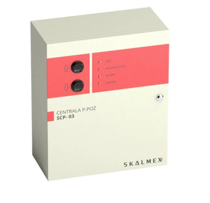 Centrala przeciwpożarowa sterująca i zasilacz do systemów rozprzestrzeniania dymu i ognia, SKALMEX SCP-03