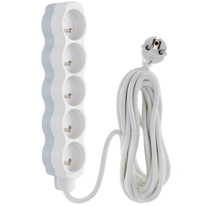 9. Przedłużacz elektryczny Listwa zasilająca na 5 gniazd [2P+Z] z wyłącznikiem biało-szara 5m BEMKO 38.38
