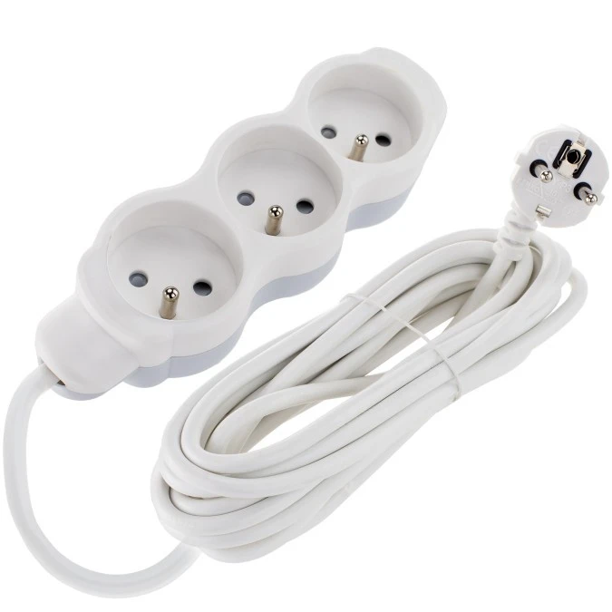 1. Przedłużacz elektryczny Listwa zasilająca na 3 gniazda [2P+Z] biało-szara 5m BEMKO 31.32