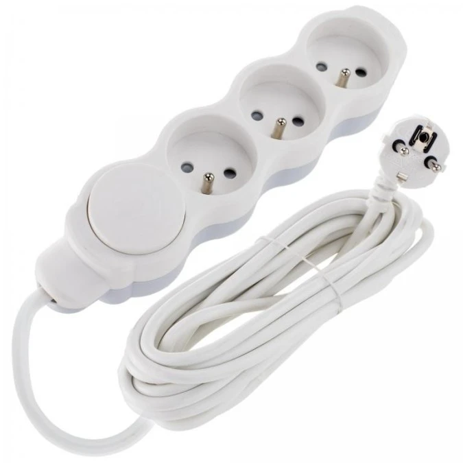 8. Przedłużacz elektryczny Listwa zasilająca na 3 gniazda [2P+Z] z wyłącznikiem biało-szara 5m BEMKO 37.40