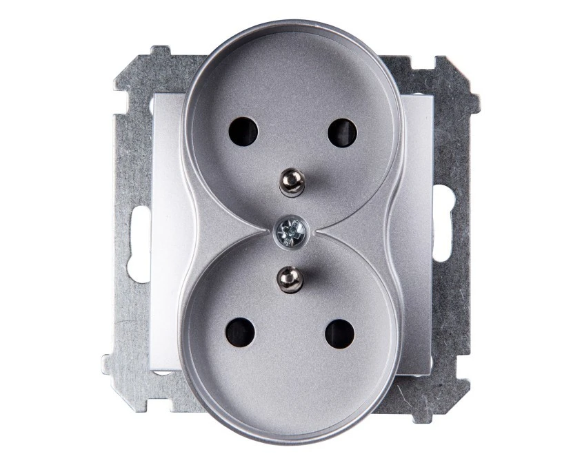 9. Simon 54 Gniazdo podwójne z/u 16A IP20 z przesłoną torów srebrny mat DGZ2MZ.01/43 39.94