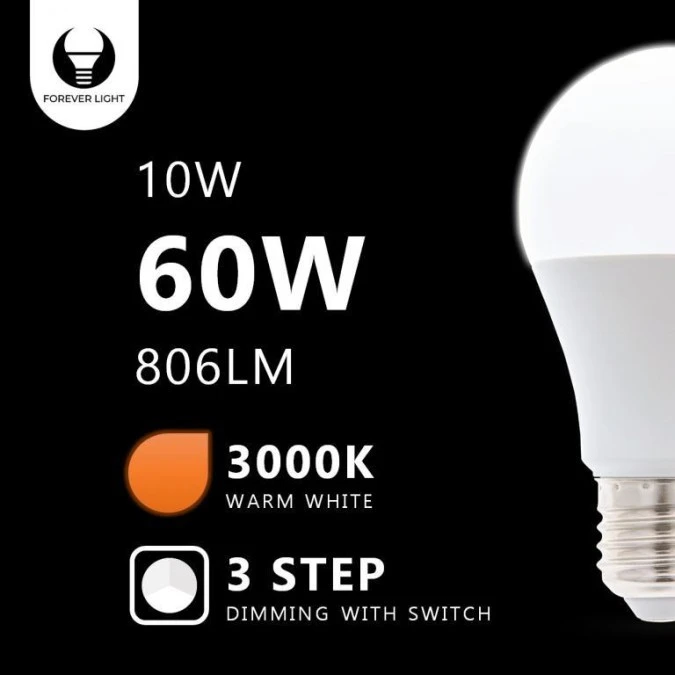 Żarówka LED E27 A60 10W 230V 3000K 806lm 3 stopniowe ściemnianie Forever Light