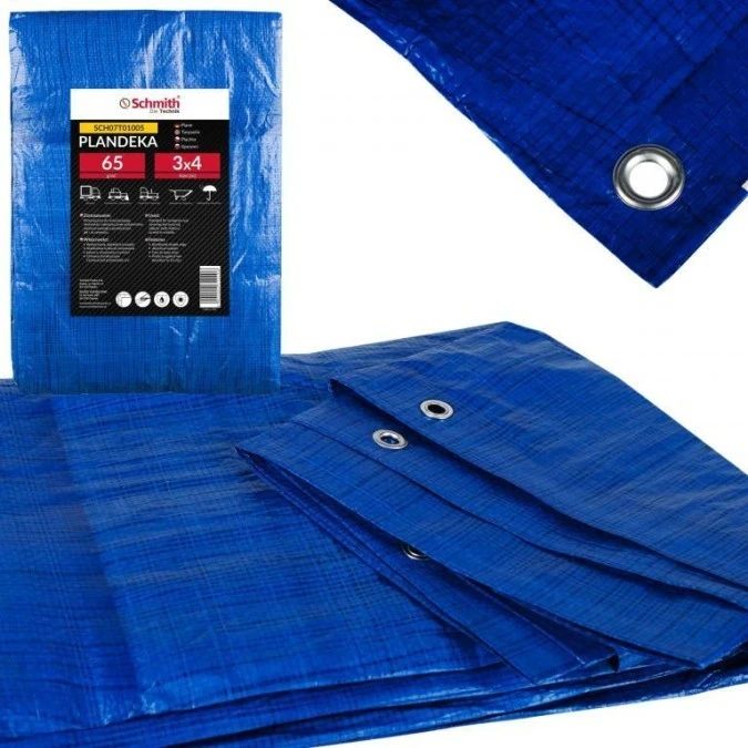 Plandeka 3x4 niebieska wzmacniana z oczkami płachta Schmith