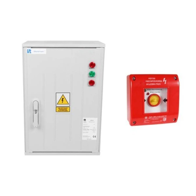 Zestaw wykonawczy uruchamiająco-sygnalizujący z certyfikatem CNBOP, przeciwpożarowy wyłącznik prądu, PWP1-UWS63