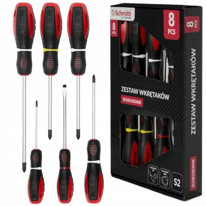 Wkrętaki z magnesem śrubokręty krzyżowy płaski zestaw 8szt Schmith