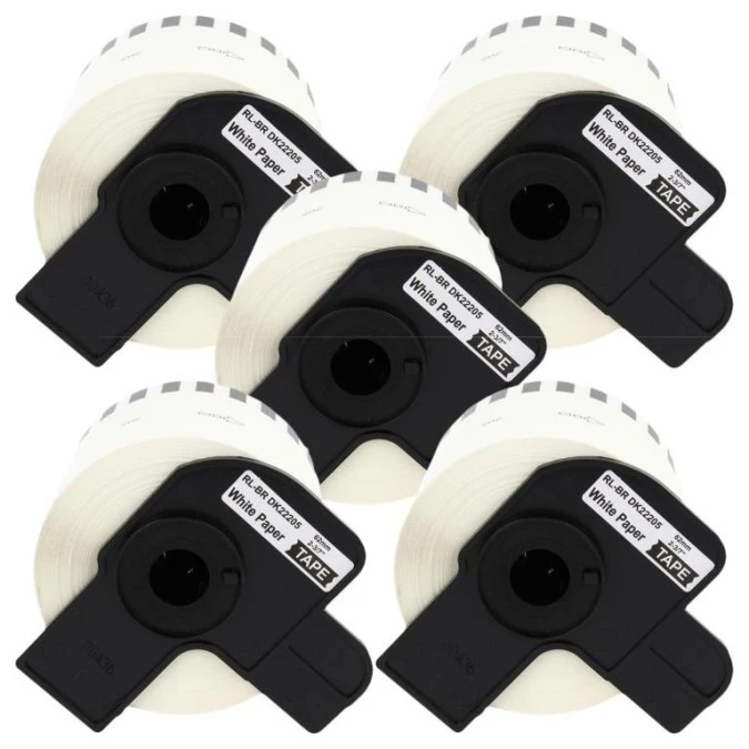 Taśma 5x DK22205 do drukarki Brother QL 62mm x 30,48mm biała taśma czarny nadruk /5szt./