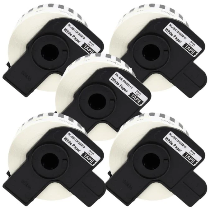Taśma 5x DK22210 do drukarki Brother QL 29mm x 30,48mm biała taśma czarny nadruk /5szt./