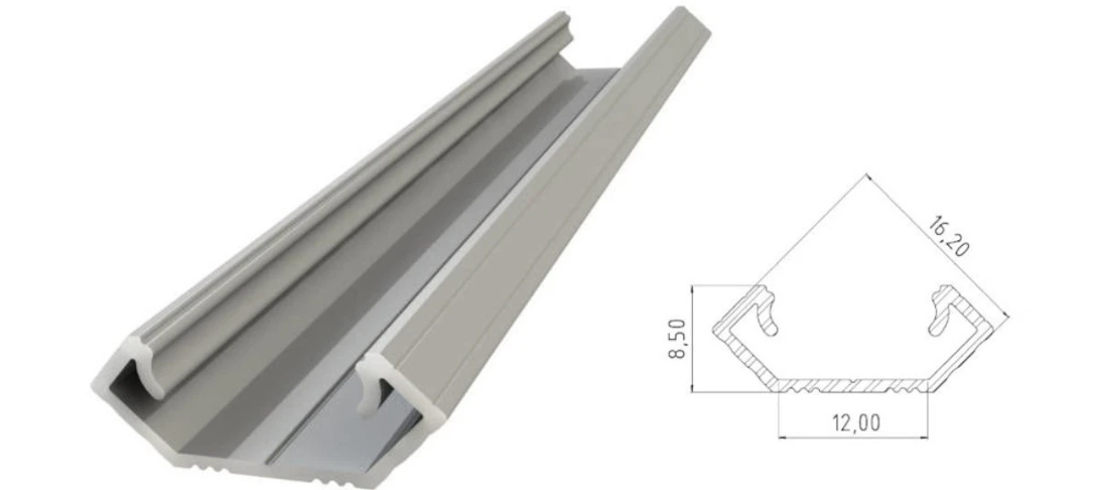 14. profil ALU kątowy 45st, anodowany srebrny, dł. 1000, max szer. taśmy 12mm 10.30