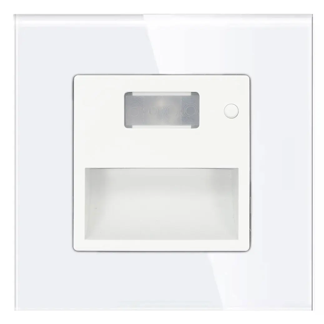 Lampka schodowa LED 230V 1.5W z czujką ruchu, światło białe 4500K - szklana ramka - biały - Tawoia Glass