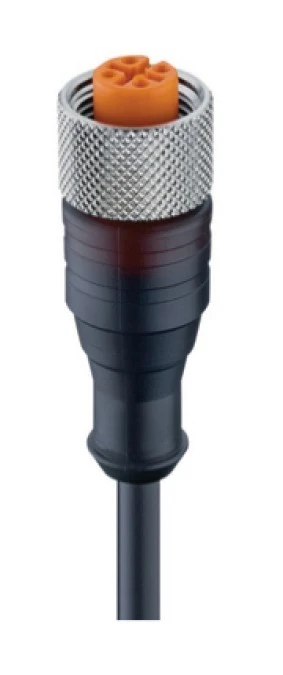 9. Kabel konfekcjonowany jednostronnie M12 4-pinowy złącze żeńskie proste z gwintem samoblokującym PVC pomarańczowy RKT 4-07/5 M 64.34