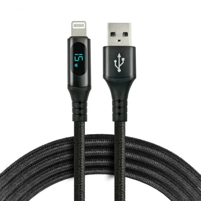 4. Kabel przewód pleciony USB - Lightning LCD everActive CBB-1IBL 100cm z obsługą szybkiego ładowania do 2,4A czarny 12.30