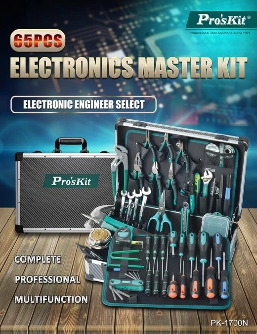 Profesjonalny zestaw narzędzi elektryka i instalatora w aluminiowej walizce PK-1700NB