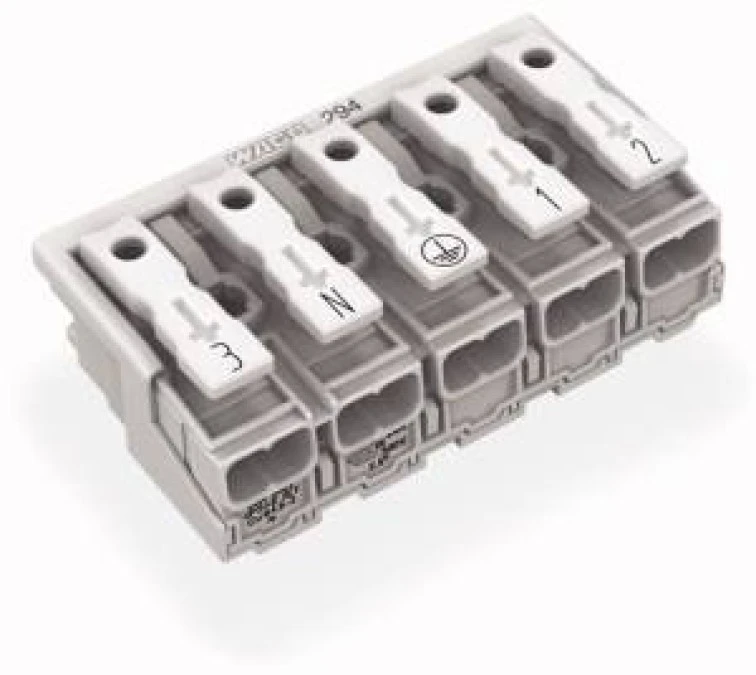 Złączka zasilająca 5-biegunowa ze stopkąmi ze stykiem PE 294-5155 /250szt./