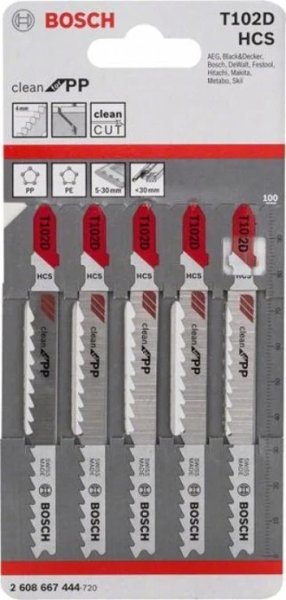 5. Brzeszczot do wyrzynarki T 102 D, Clean for PP, zestaw 5 szt. Bosch Accessories 2608667444 5 szt. 32.49