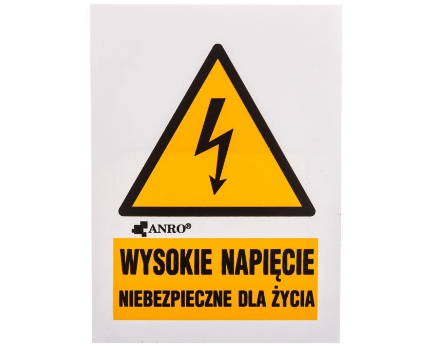 Samoprzylepna tabliczka ostrzegawcza /WYSOKIE NAPIĘCIE NIEBEZPIECZNE DLA ŻYCIA 52X74/ 3EOA/Q1/F
