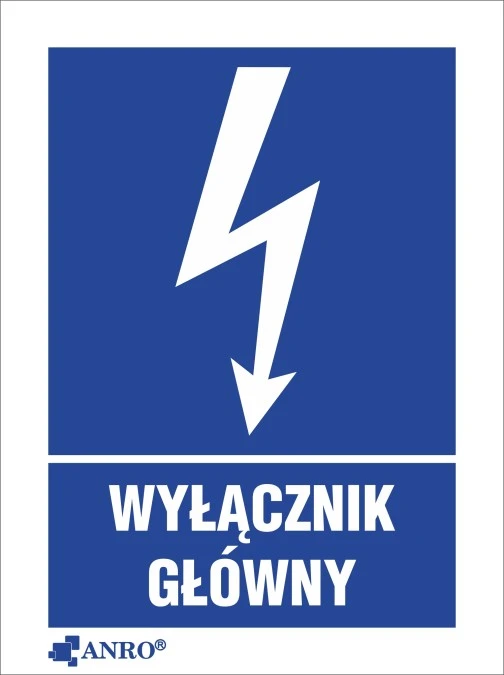 Samoprzylepna tabliczka ostrzegawcza /GŁÓWNY WYŁĄCZNIK PRĄDU 52X74/ 20EIA/Q1/F