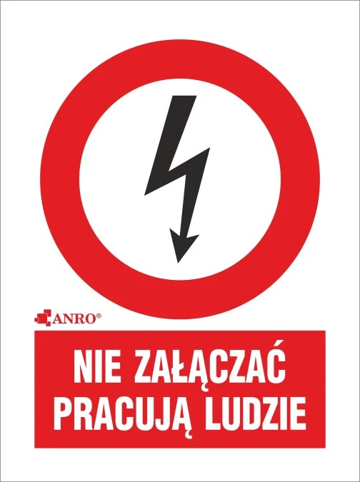 9. Samoprzylepna tabliczka ostrzegawcza /NIE ZAŁĄCZAĆ PRACUJĄ LUDZIE 52X74/ 2EZA/Q1/F 1.21