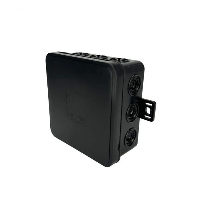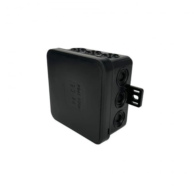 13. Puszka hermetyczna natynkowa elastyczna 100x100x41mm 12-wlotowa, zamknięcie na klik IP54 czarna EDO 6.33