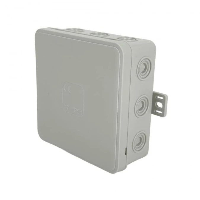 10. Puszka hermetyczna natynkowa elastyczna 100x100x41mm 12-wlotowa, zamknięcie na klik IP54 szara EDO 5.71
