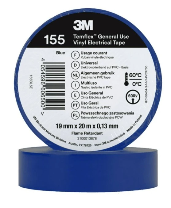 Taśma izolacyjna 19mm x 20m PCW Temflex 155 niebieska 7100184745