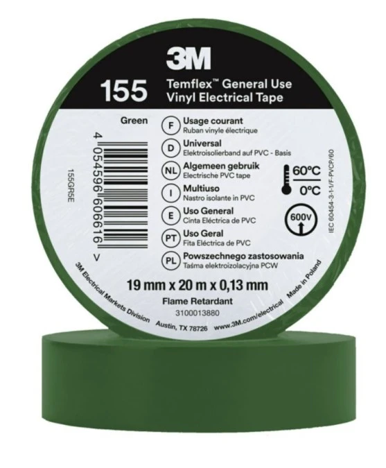 Taśma izolacyjna 19mm x 20m PCW Temflex 155 zielona 7100184747