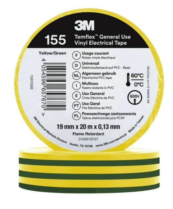 Taśma Izolacyjna 19Mm X 20M Pcw Temflex 155 Zielono Żółta 7100222489