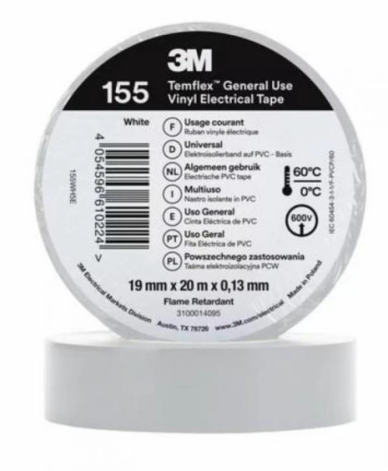 Taśma izolacyjna 19mm x 20m PCW Temflex 155 biała 7100184742