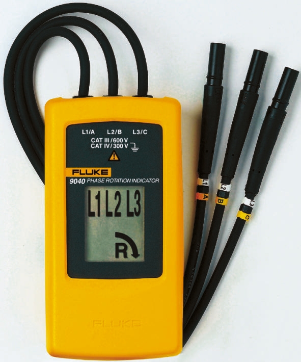 Wskaźnik kolejności faz FLUKE 9040/UK Sonda pomiarowa CAT III 600 V, CAT IV 300 V LCD CAT III 600 V, CAT IV 300 V 1mA