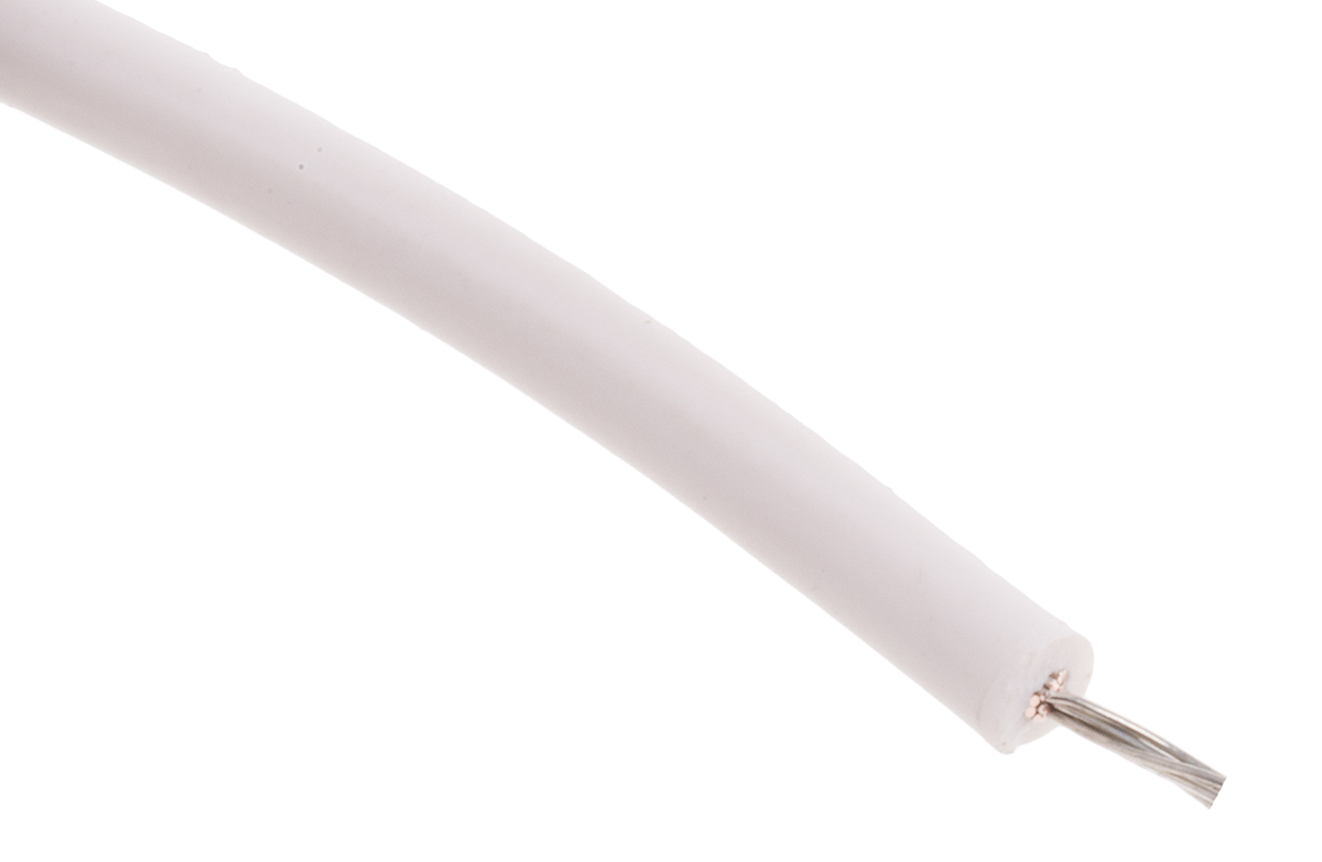 7. Przewód o podwyższonej odporności ETFE Biały, 100m 19/0,3 mm, 600 V, -75 → +150C, Ø 2.15mm, RS PRO 1433.77