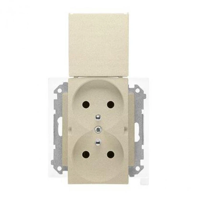 Simon 55 Gniazdo podwójne do wersji IP44 z uszczelką (moduł), szybkozłącza. Klapka w kolorze Szampański mat TGZ2BMCZ.01/144