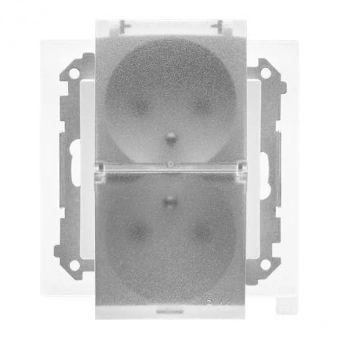 Simon 55 Gniazdo podwójne do wersji IP44 z uszczelką (moduł), szybkozłącza. Klapka transparentna Aluminium mat TGZ2BMCZ.01/143A