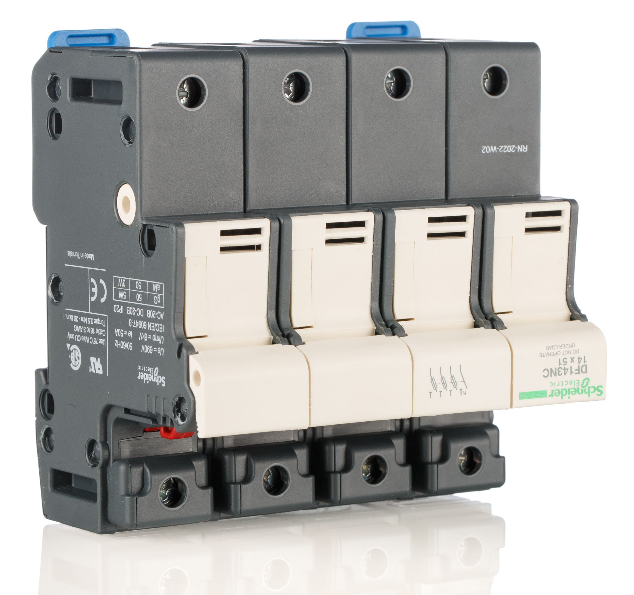 12. Uchwyt bezpiecznikowy montowany na szynie Mocowanie szynowe rozmiar: 14 x 51mm 50A 690V ac Schneider Electric 589.80